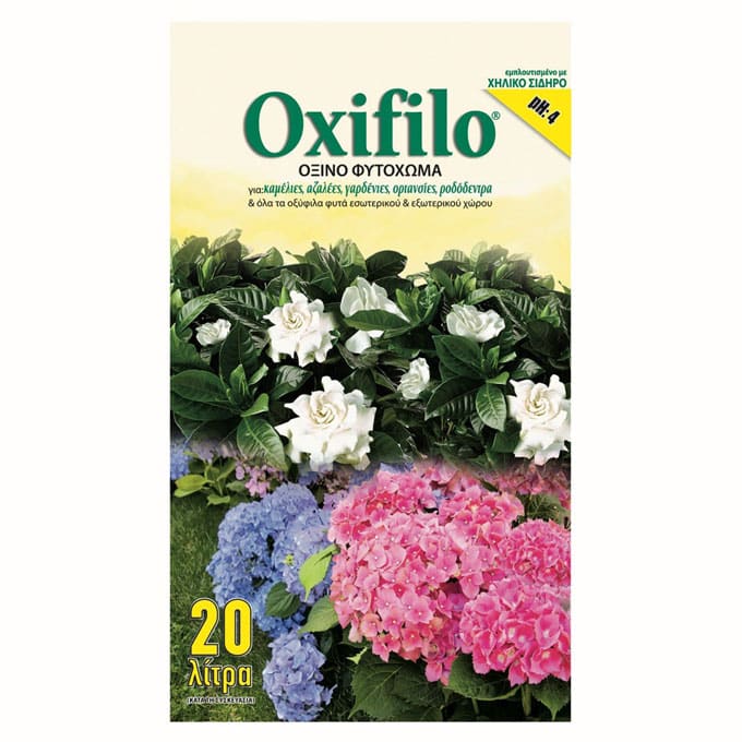 Ποσότητα: 20 Lt Χρήση: Ενδείκνυται για οξύφυλλα φυτά όπως γαρδένιες, ορτανσίες, καμέλιες, αζαλέες κ.ά. Σύνθεση: Εδαφικό υπόστρωμα με βάση την ξανθιά τύρφη με