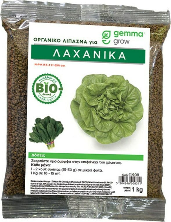 Οργανικό λίπασμα κατάλληλο για λαχανικά όπως μαρούλια, αντίδια, σπαράγγια, μπρόκολο, λάχανο, σπορόφυτα κ.α.  Ευνοεί την υγιή ανάπτυξη και χαρίζει πλούσια σοδειά. Η σύνθεση από φυσικά παραγόμενα υλικά όπως ο φλοιός κακαόδεντρου, εκχυλίσματα επιλεγμένων φυτών και υποπροϊόντα τους, προσφέρει στα φυτά μοναδικής ποιότητας τροφή.